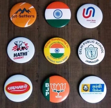 Personalized button badges add flair to your promotional needs.